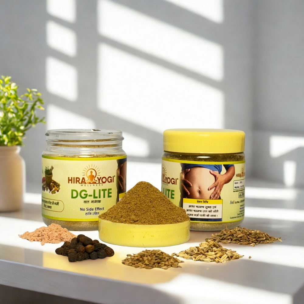 DG-Lite is a unique herbal blend designed to naturally support your digestive health and provide relief from common stomach issues. Formulated with the wisdom of Ayurveda, Hira Yogi Wellness DG-Lite Powder promotes a healthy gut and enhances overall well-being. Say goodbye to discomfort and embrace the power of natural digestion support.
