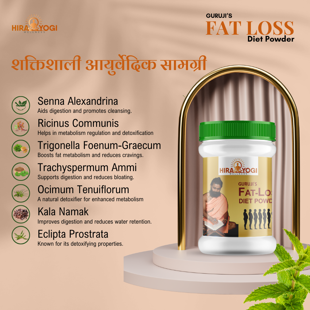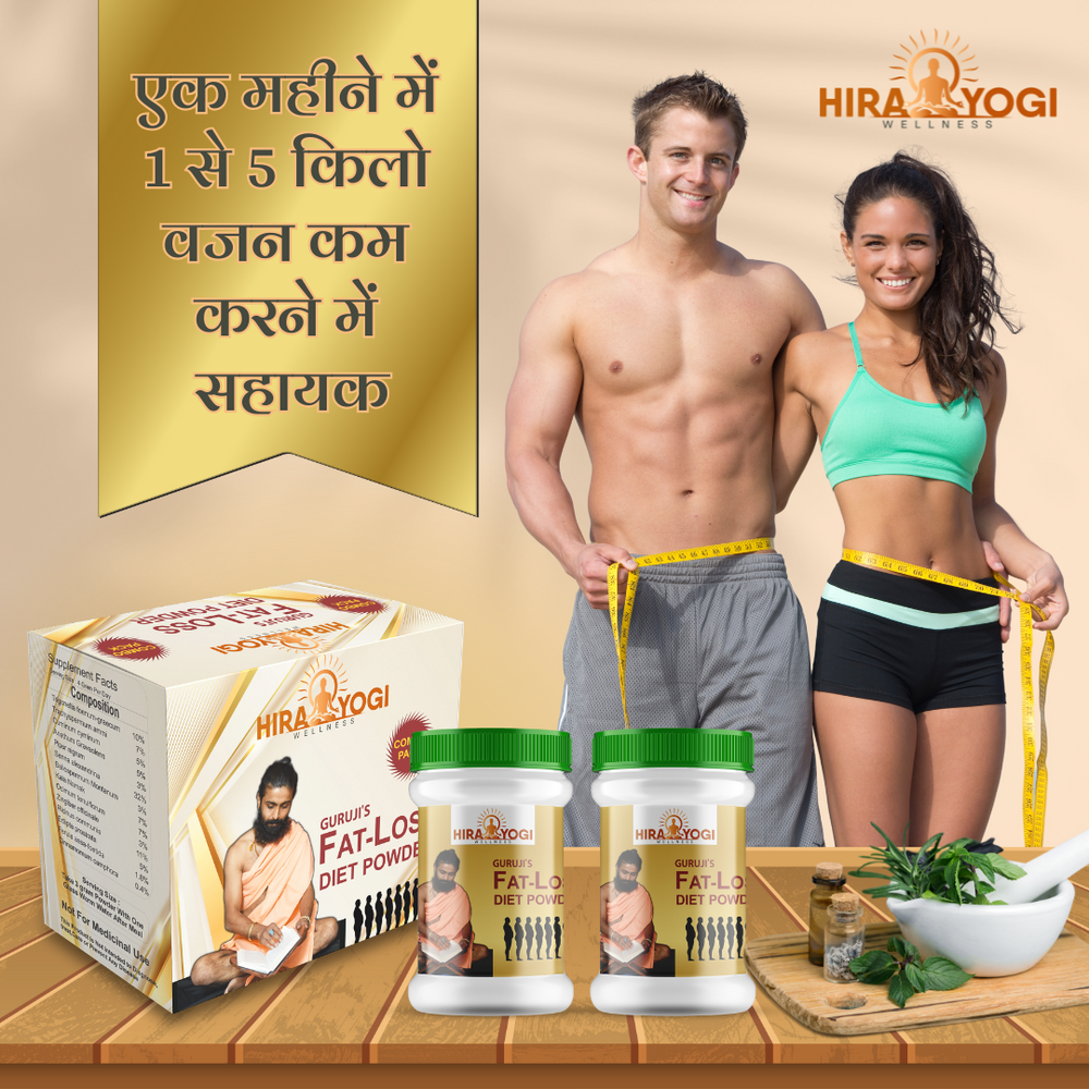 HIRA YOGI WELLNESS FAT LOSS Diet Powder is a scientifically formulated Ayurvedic blend designed to support healthy weight management. Crafted with 100% natural ingredients, this powder aids digestion, enhances metabolism, and promotes detoxification to help you achieve your wellness goals sustainably.