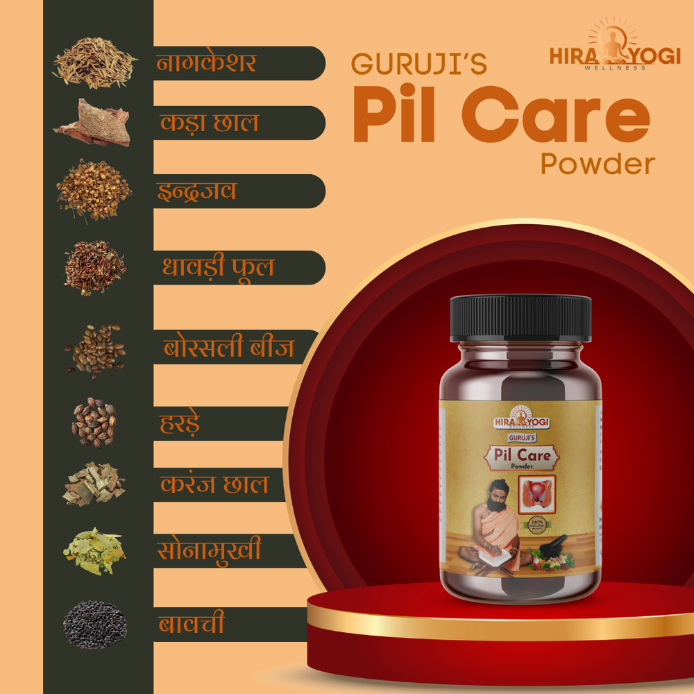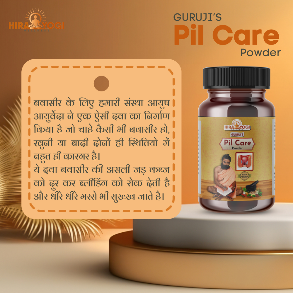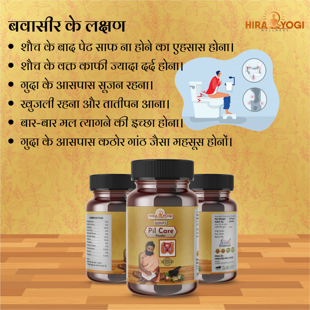 HiraYogi’s PIL Care is a 100% Ayurvedic formulation designed to provide natural relief from piles (hemorrhoids), constipation, and digestive discomfort. Made with clinically tested herbs, this blend reduces pain, swelling,